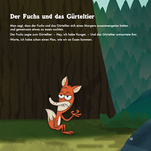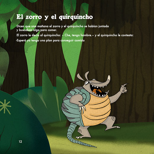 Alle Geschichten werden von Xolo, einem mexikanischen Welpen, erzählt. Die Geschichten sind geeignet für Kinder ab 2 Jahren und sind jeweils auf Spanisch und Deutsch abgedruckt. Die Geschichte, die er uns heute vorstellen wird, heißt „Der Fuchs und das Gürteltier“. Es handelt sich um eine argentinische Erzählung von zwei Tieren, die zusammenarbeiten müssen, um ihren Hunger zu stillen.